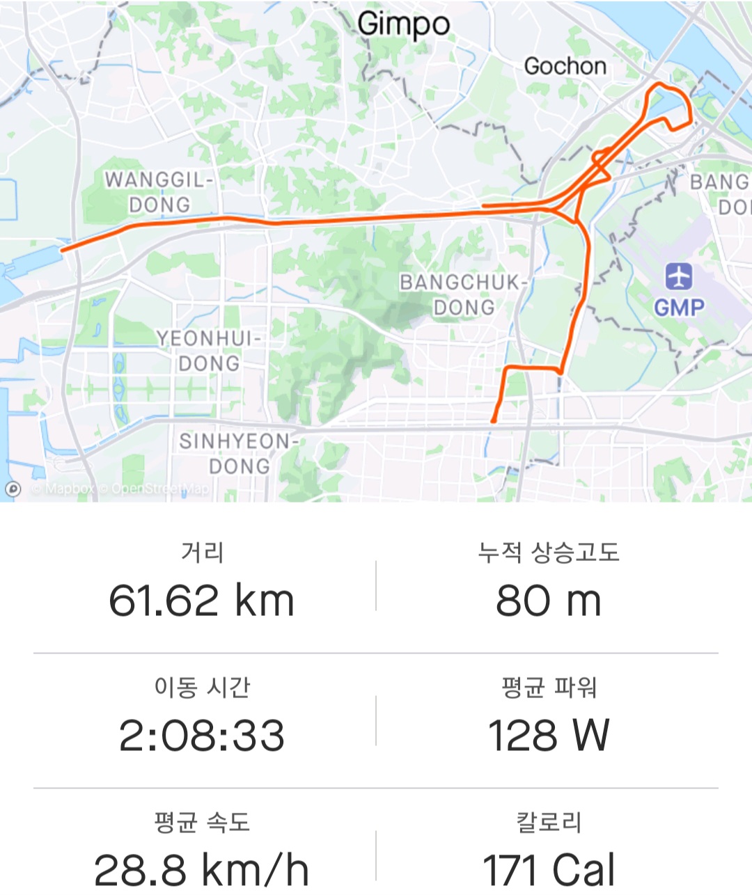 아라뱃길 라이딩 하면서 싯포스트 높이가 어떤가 신경써 봄...