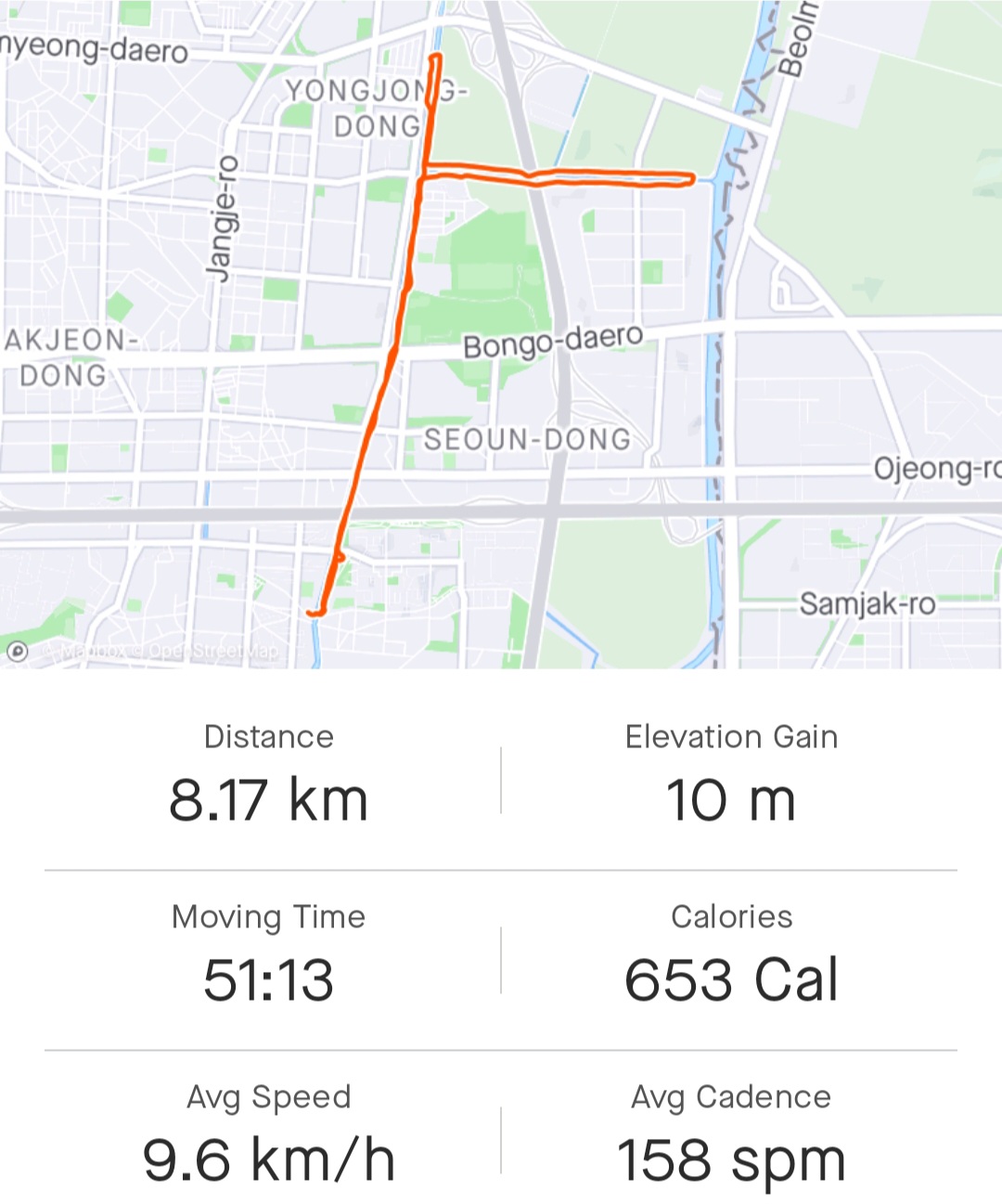 라이딩 한번 해서 그런지 힘들어 뛰다가 걷기를 반복 함...