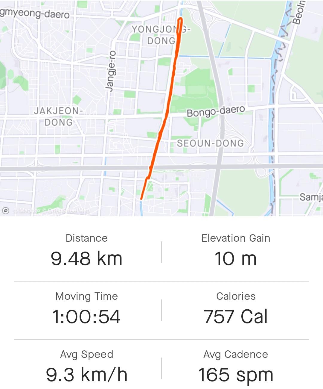어제 대충 계산 시 한바퀴에 5Km 정도 되어 두바퀴 돈 것인데 아니었음...