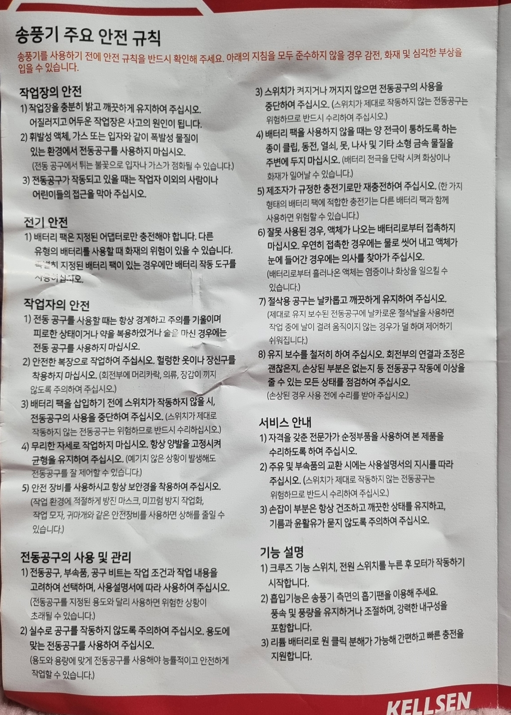 차량용으로 사용할 켈슨(KELLSEN)무선 송풍기, 옵션 4.0Ah 배터리 2개 풀세트 146,000원 구입...