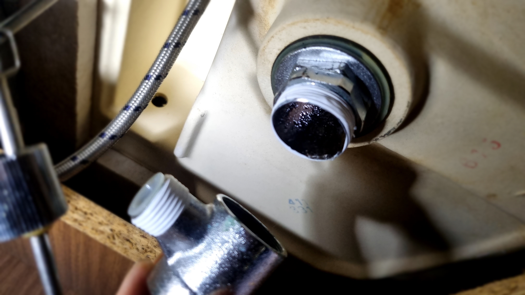 배수관 분해 후 대충 닦고는 나사부분에 테프론 테이프 감고 다시 조립...
