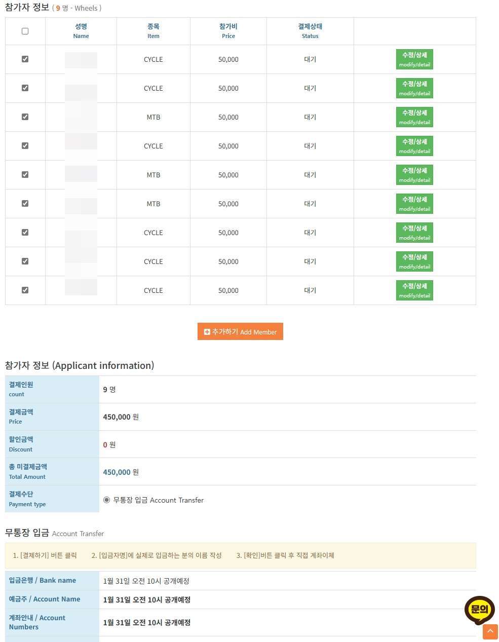 회사 자전거 동호회에서 단체 접수를 진행 했고...