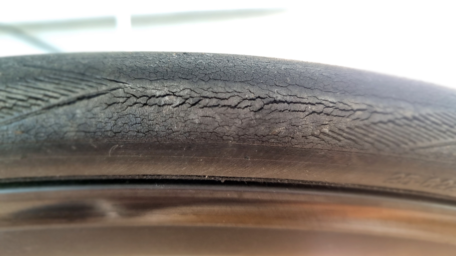 타이어가 경화되어 그런지 많이 갈라져 교체하게 됨...