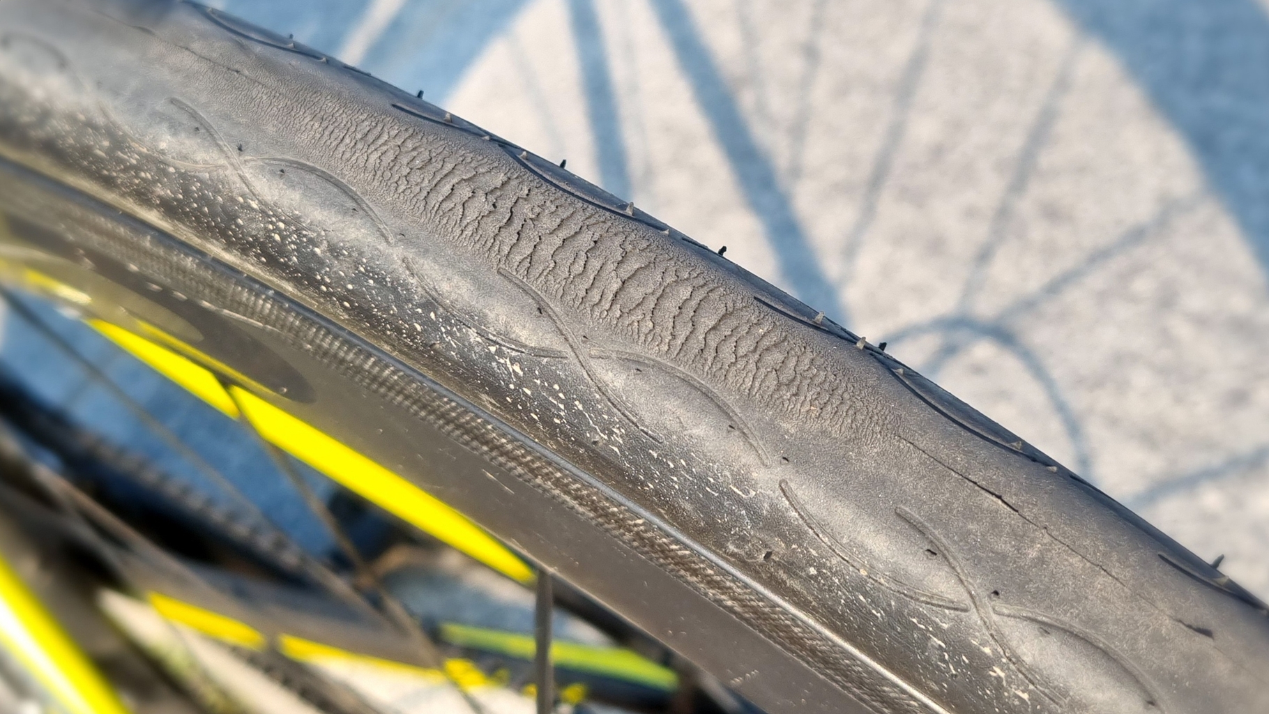 타이어를 살펴 보니 갈림 흔적이 있음...