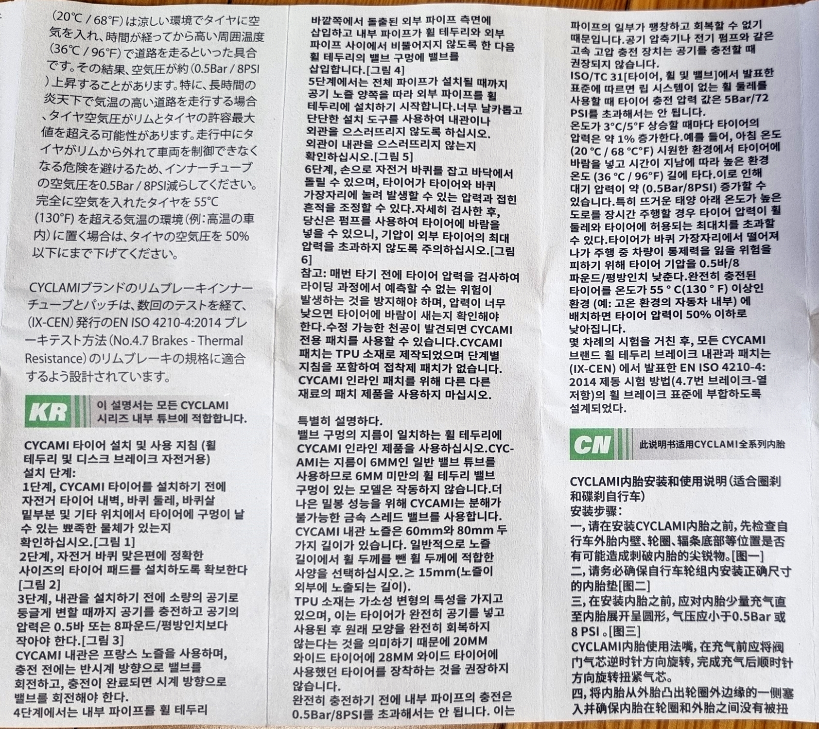 2024.04.16(화) cyclami TPU 자전거 튜브 엠티비 전용 구입, 도착...