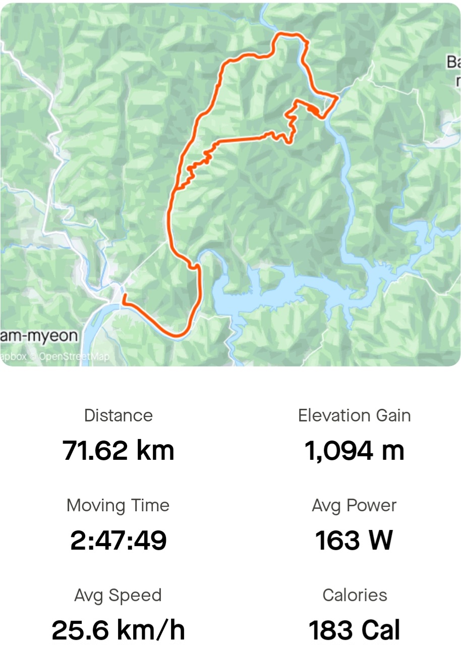 역시나 매번 이지만 한묵령부터 골인 지점까지 일부 구간은 혼자 라이딩 하는 느낌...