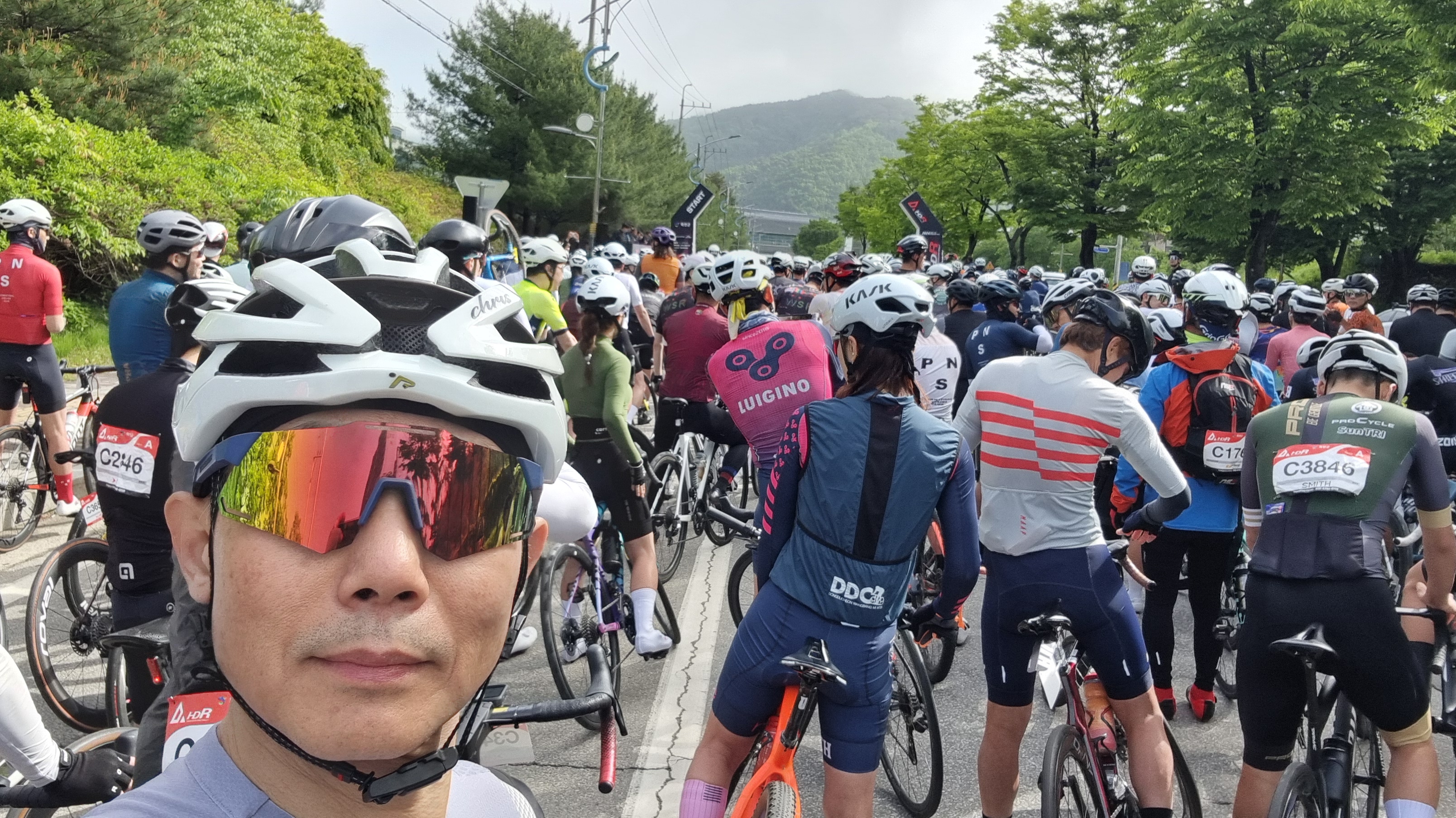 매번 출발 초반 라이더들이 몰려 중앙선까지 넘을 정도로 도로를 꽉 매워 달렸는데....