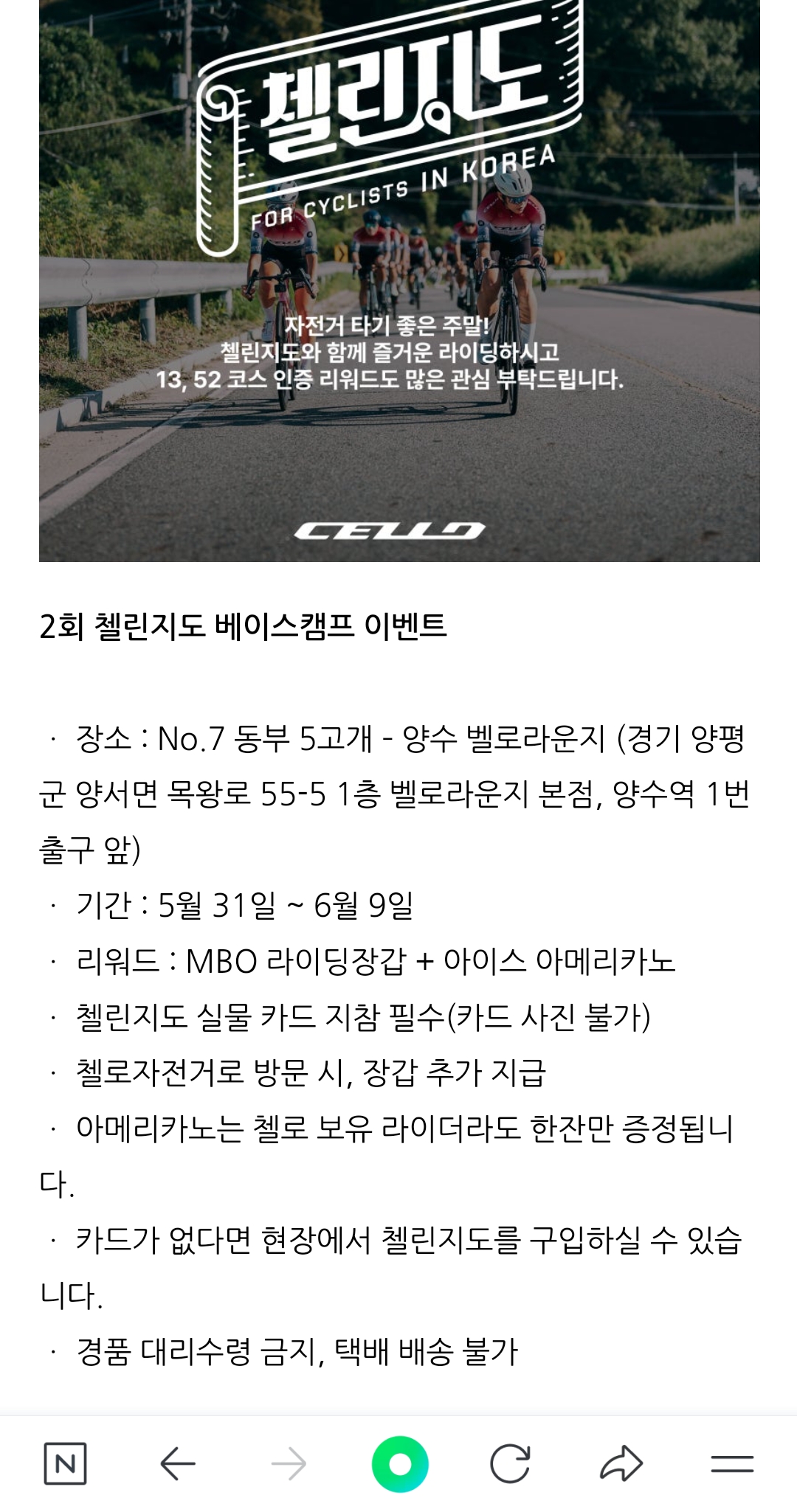 첼린지도 카드 보여주고 라이딩 장갑 받아가는 이벤트가 있어 양수역에 가게 됨...
