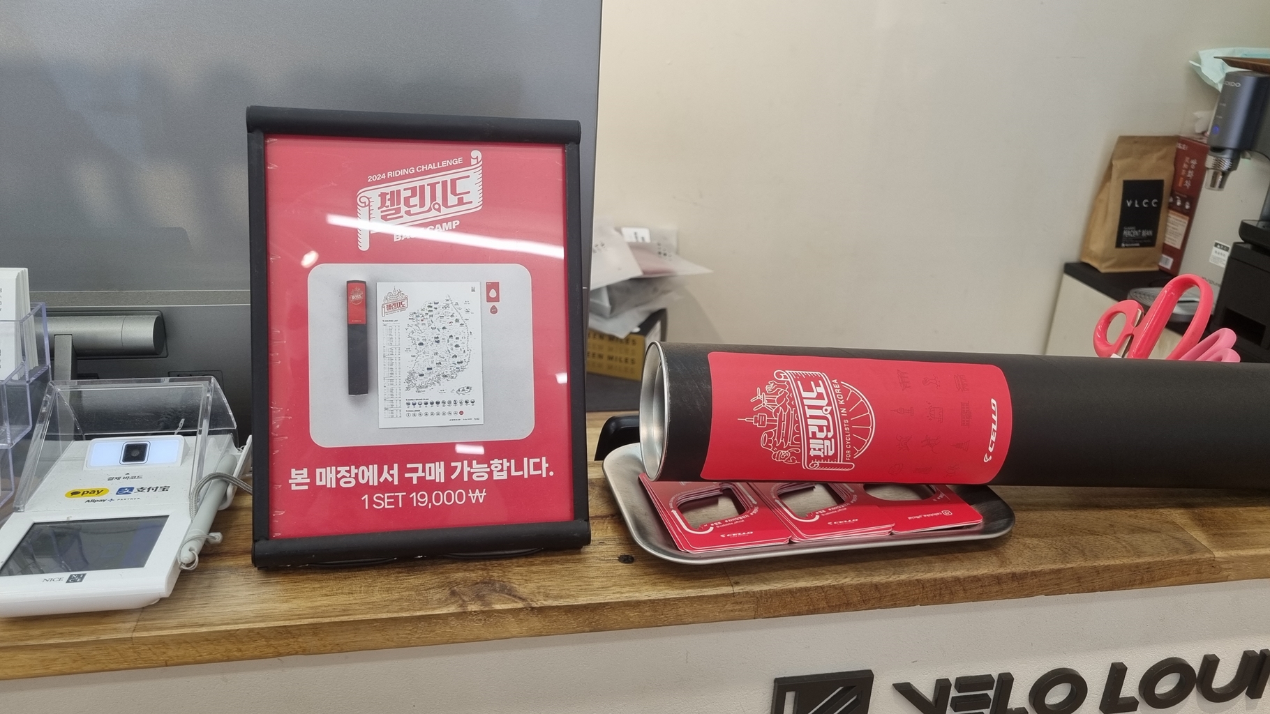 매장 방문하여 첼리지도 구입하고 장갑 고르고, 커피 한잔 마시고...