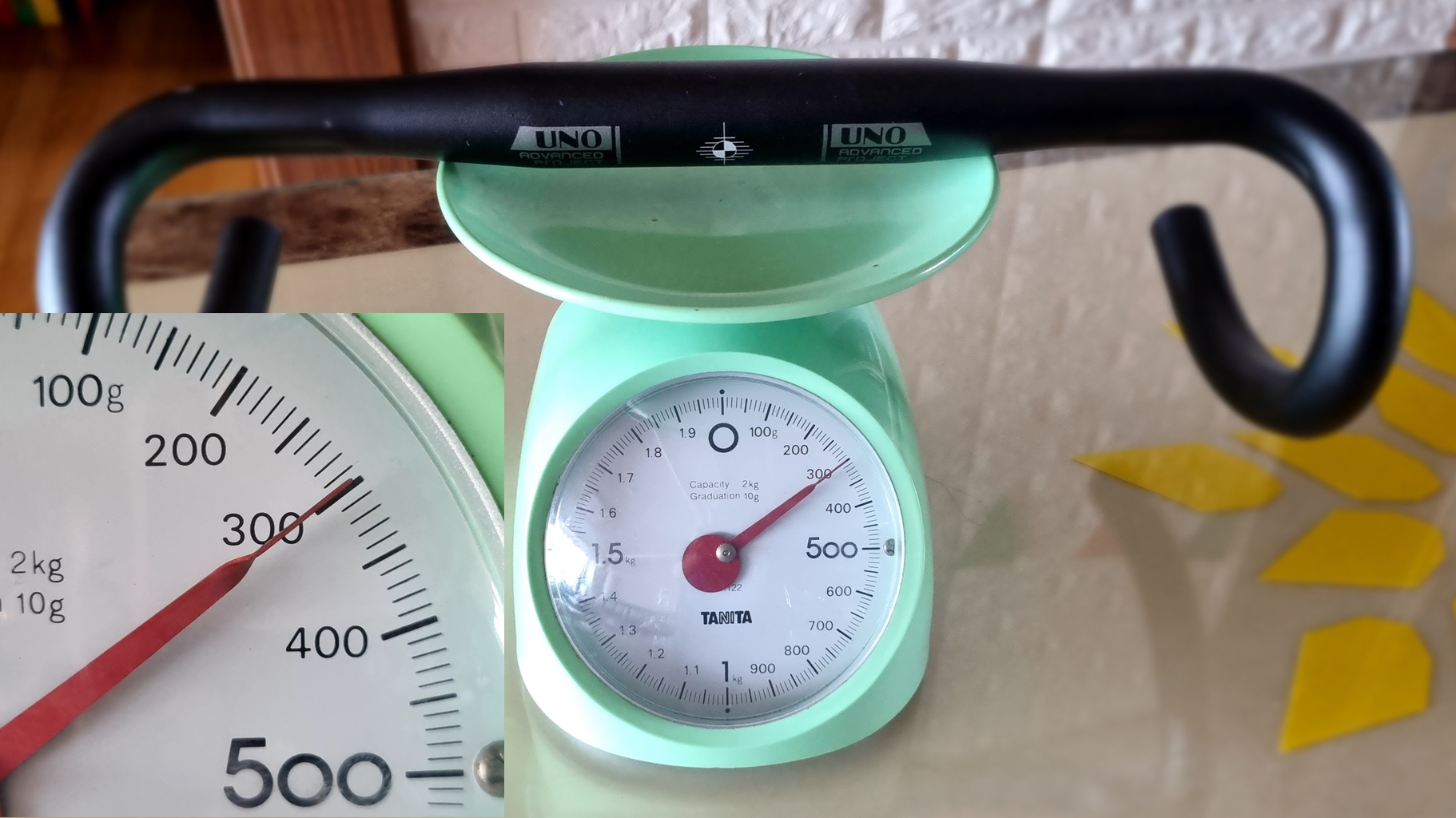 설치돼 있던 카본 핸들바 실측 해 보니 210g으로 알루미늄 핸들바(298g) 보다 88g 가벼움...