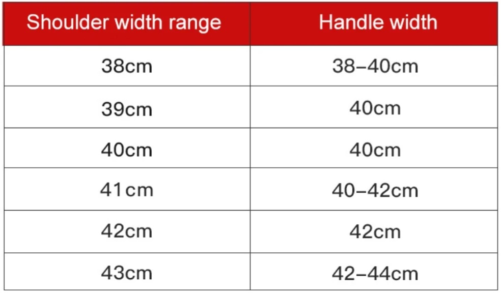 어깨 넓이에 따른 핸들바 길이 선택 참고 표...