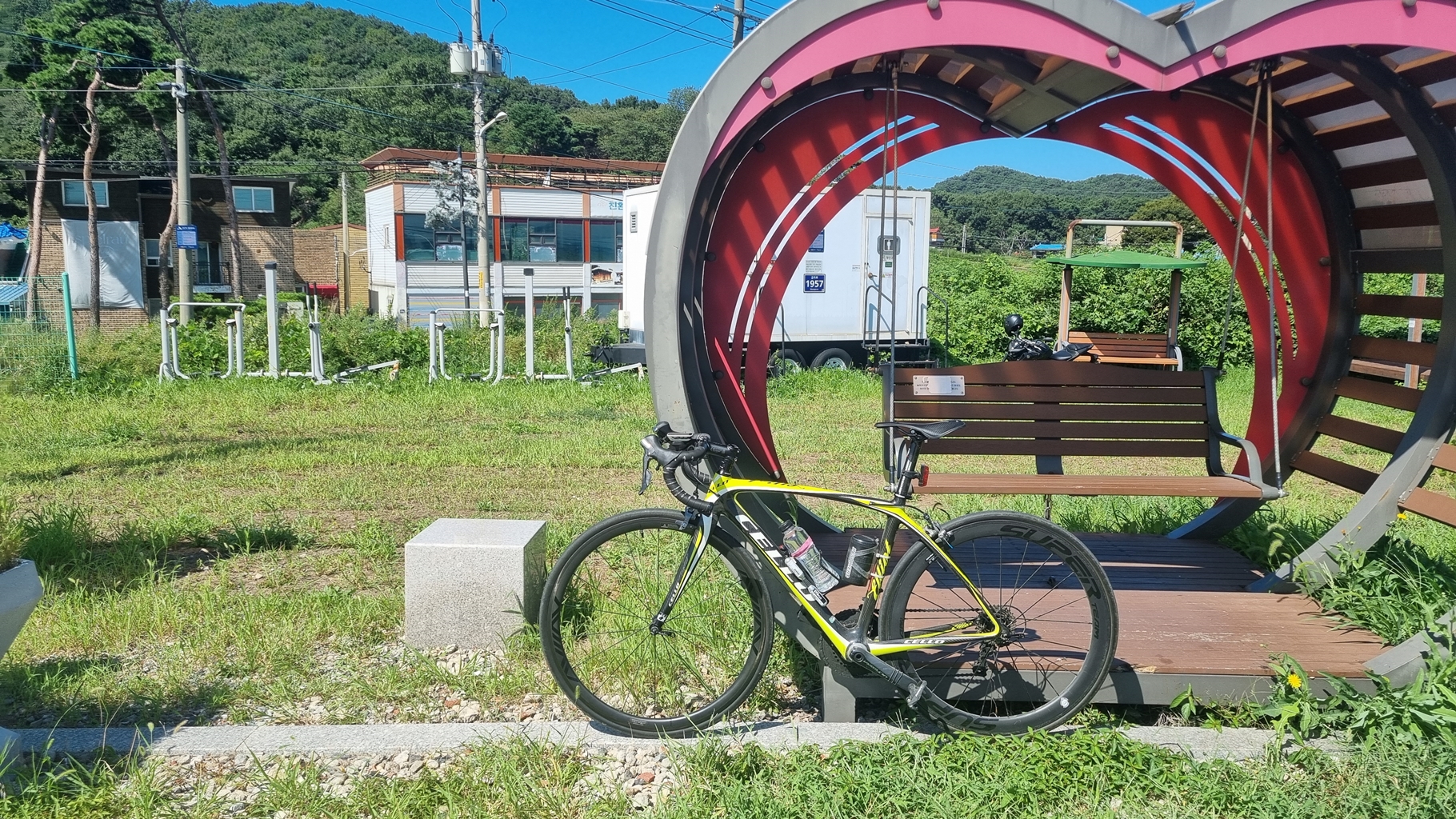아침 후 잠시 쉬다가 로드바이크 가지고 집을 나섬...
