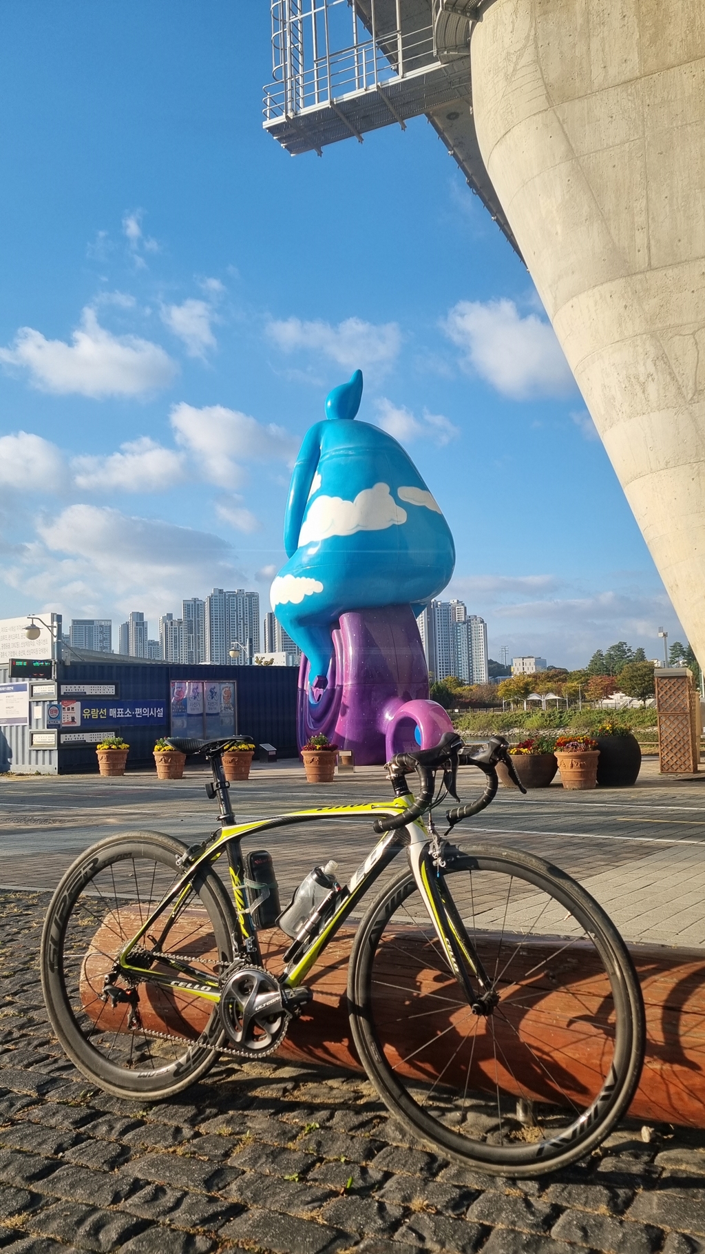 잠자고 일어나 아.점 후 로드바이크 가지고 집을 나섬...