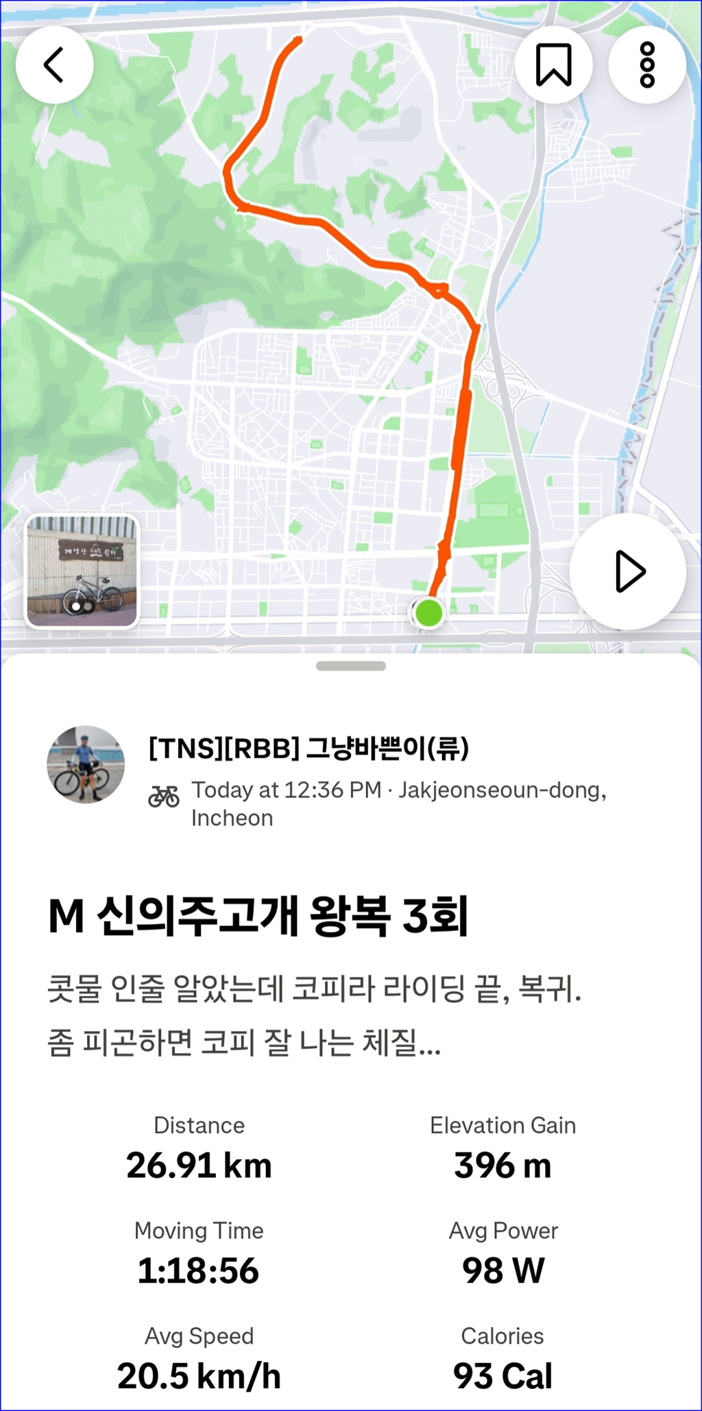 야간근무 후 낮에 잠깐 짬을 내 간만에 라이딩 하게 됨...