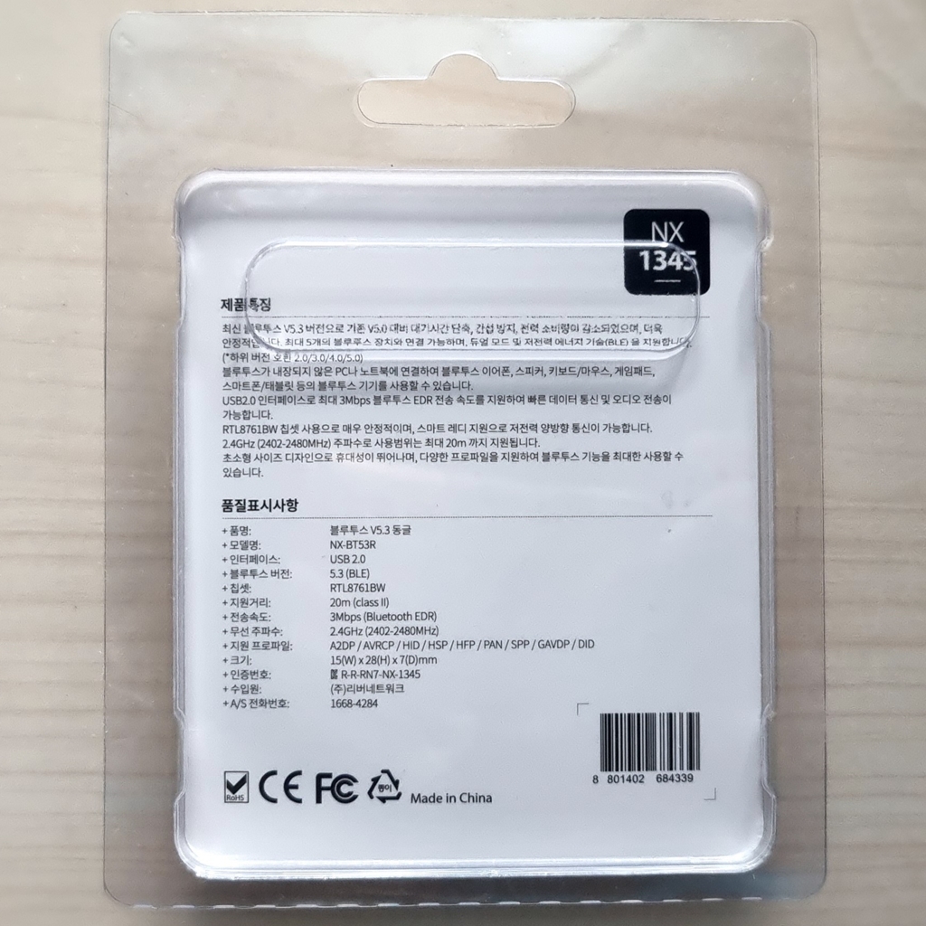 2025.03.17(월) 넥시 NX-BT53R 블루투스 5.3 동글 NX1345 도착...