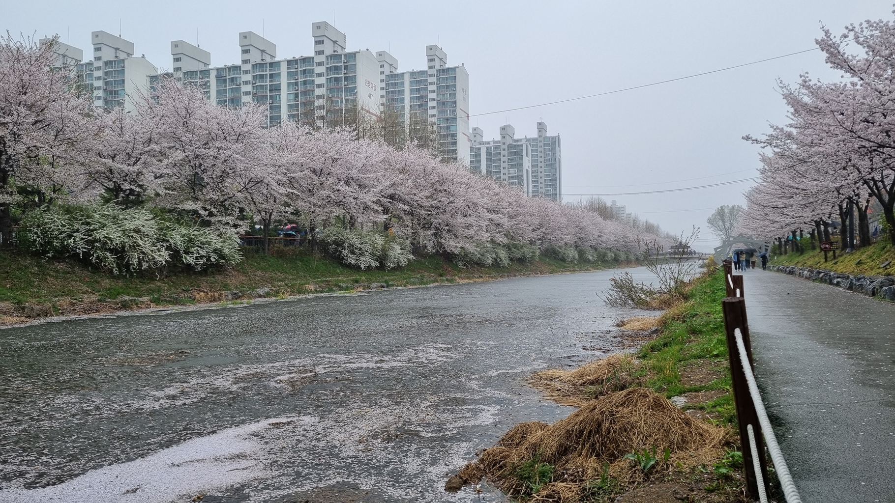 어제와는 다르게 바람과 비 때문인지 꽃잎이 많이 떨어져 있었음...