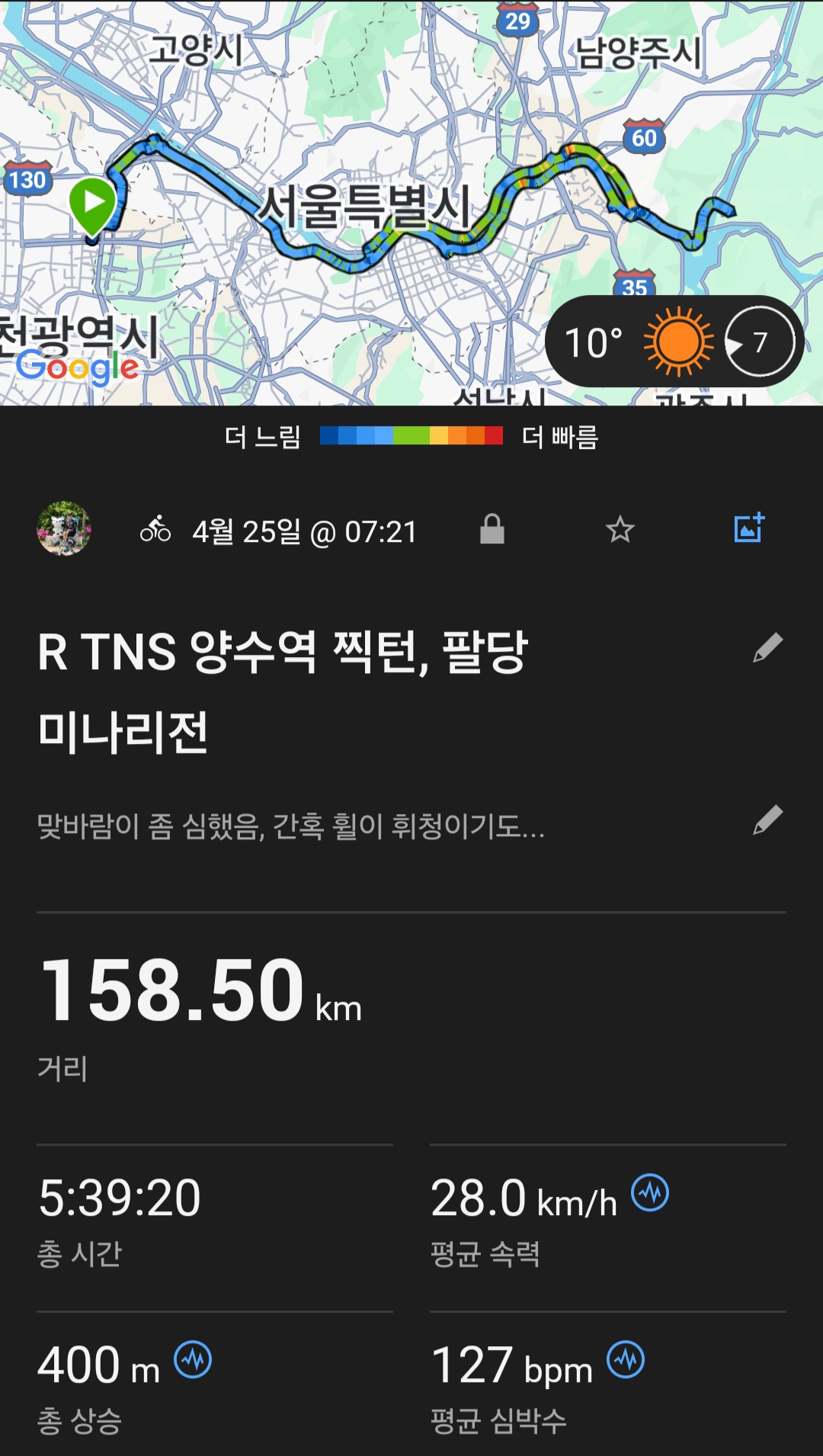 2025.04.25(금) TNS 양수역 찍턴, 팔당 미나리전 라이딩... (158.50Km)