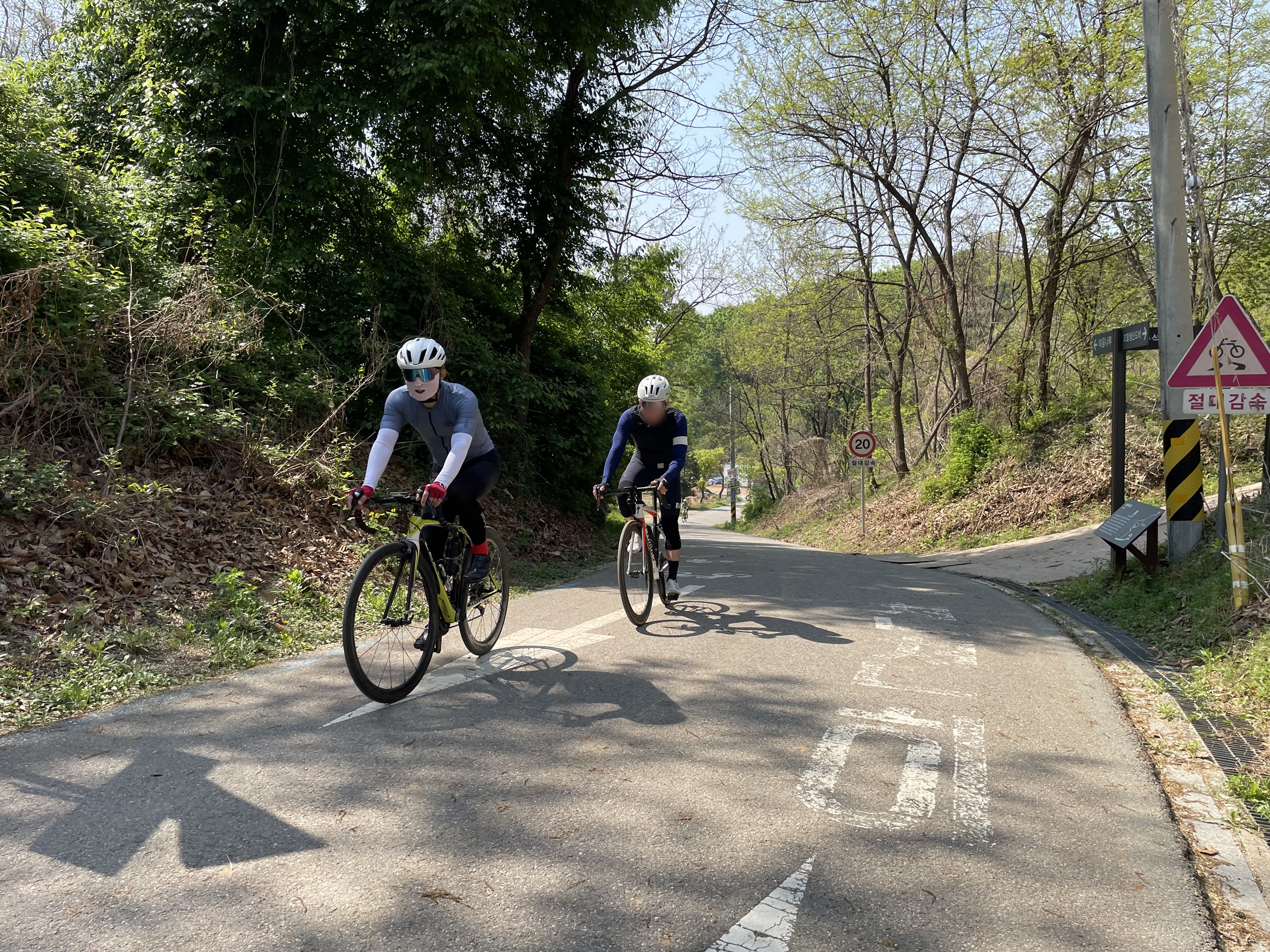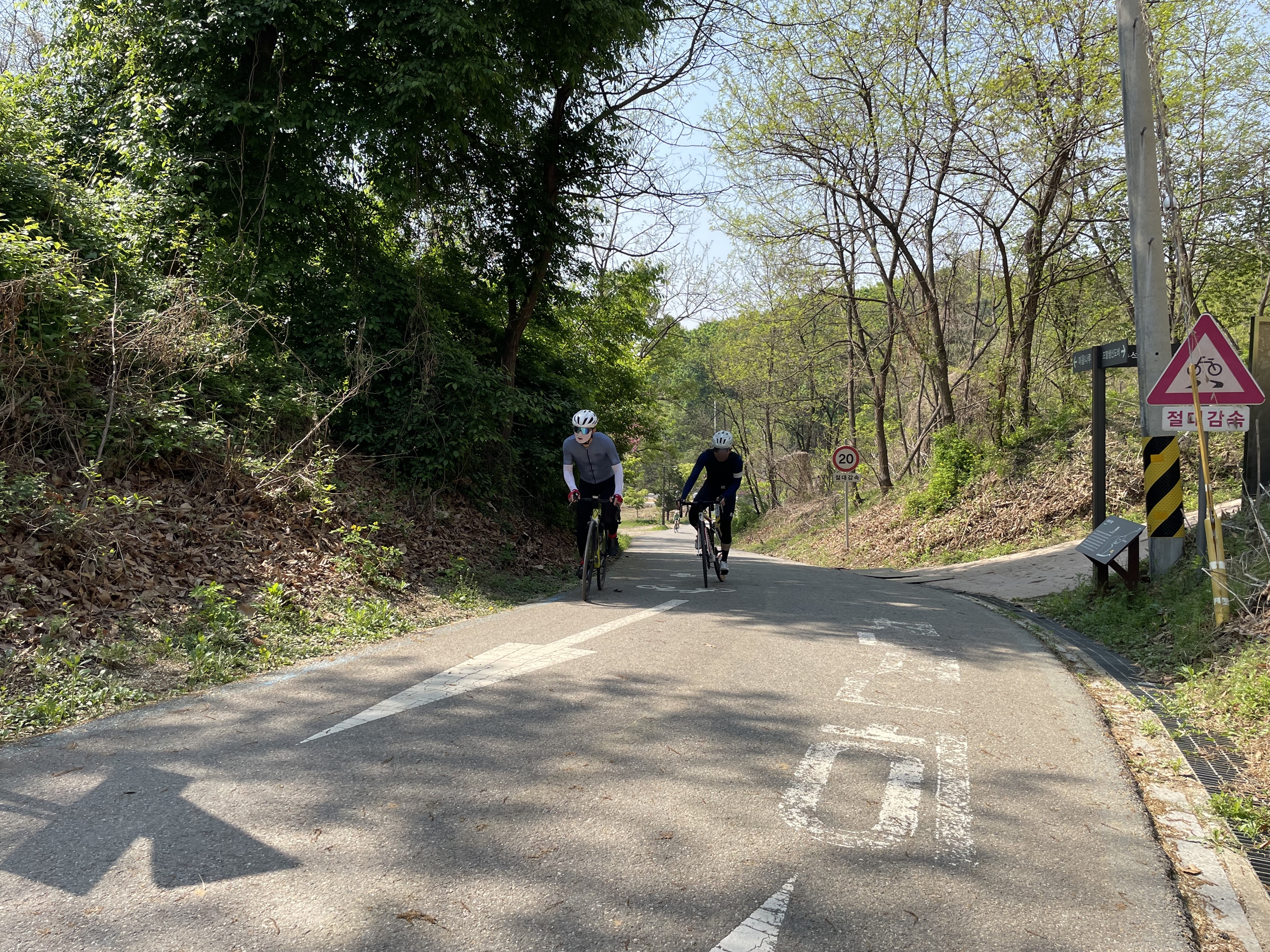 복귀길 자연스레 4명씩 두팀으로 나뉘어 라이딩 하게 되었고...