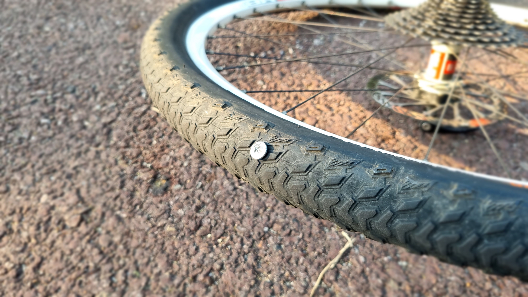 자전거 도로에 있던 볼트에 의해 뒷바퀴 펑크...