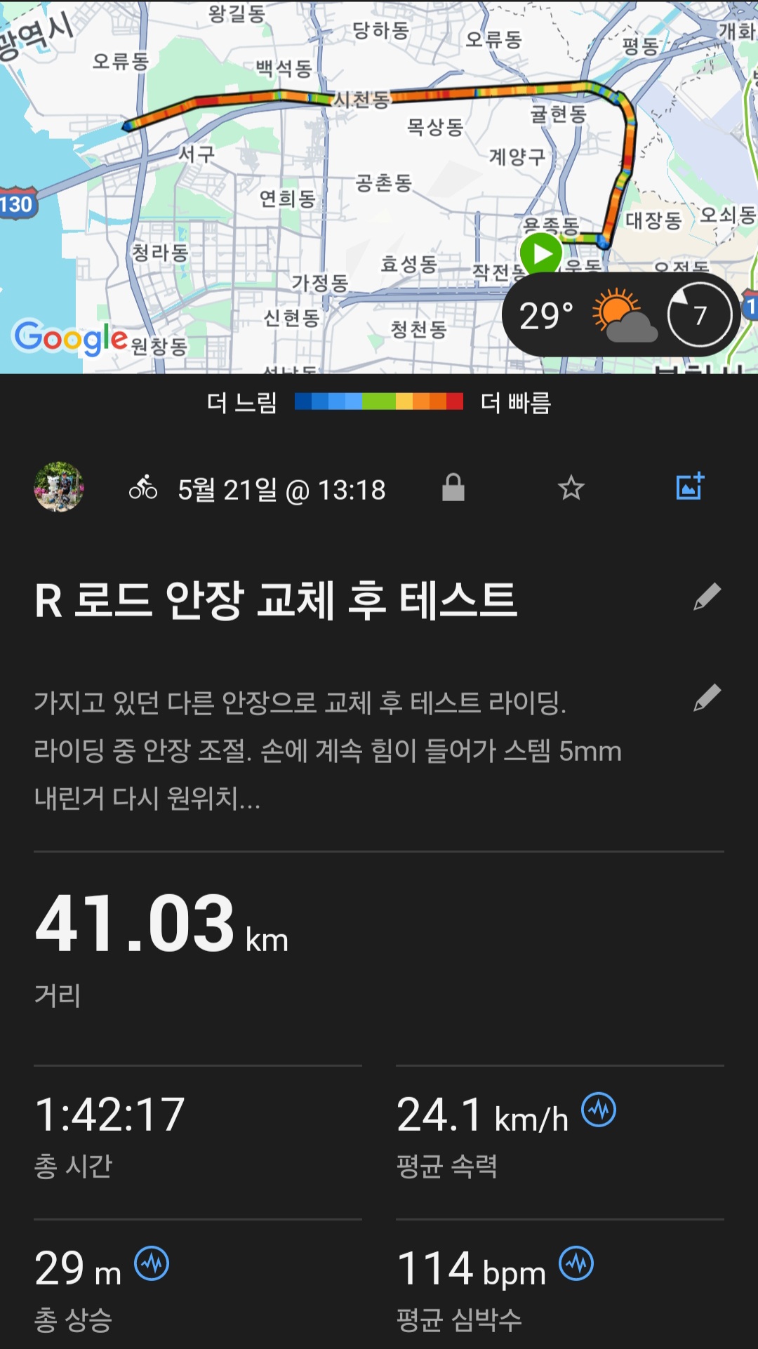 2025.05.21(수) 로드바이크 안장 교체 후 테스트... (41.03Km)