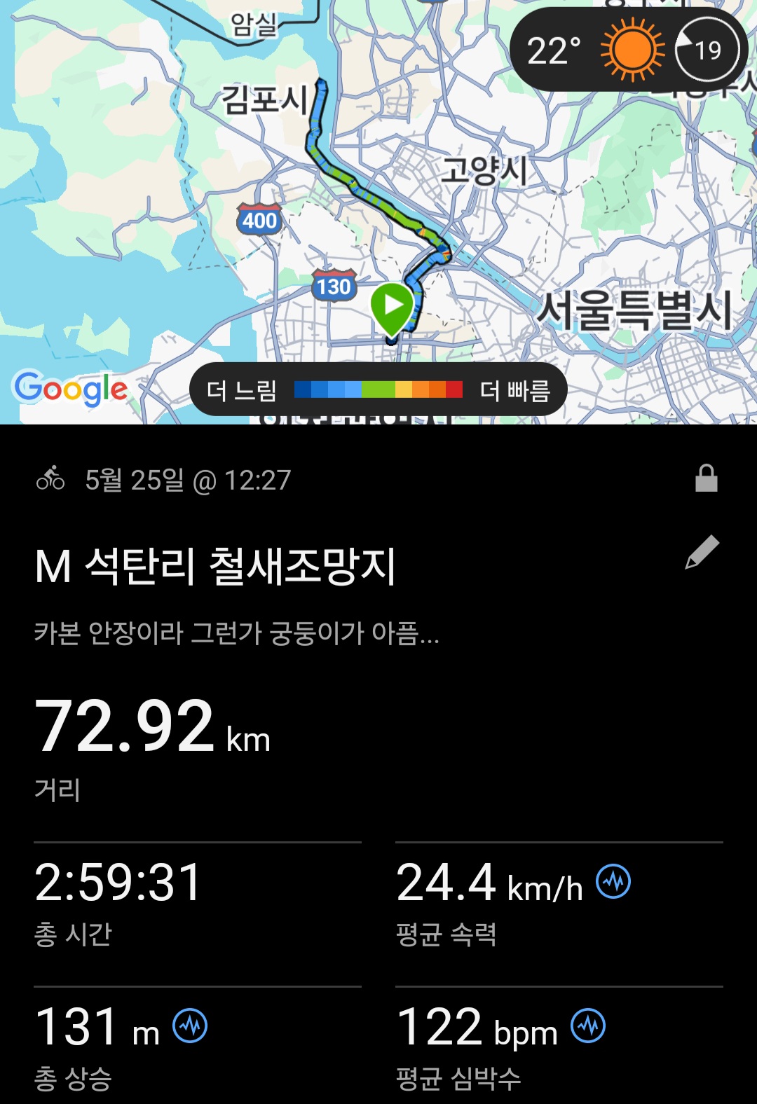 2025.05.25(일) 석탄리 철새조망지 라이딩... (72.92Km)