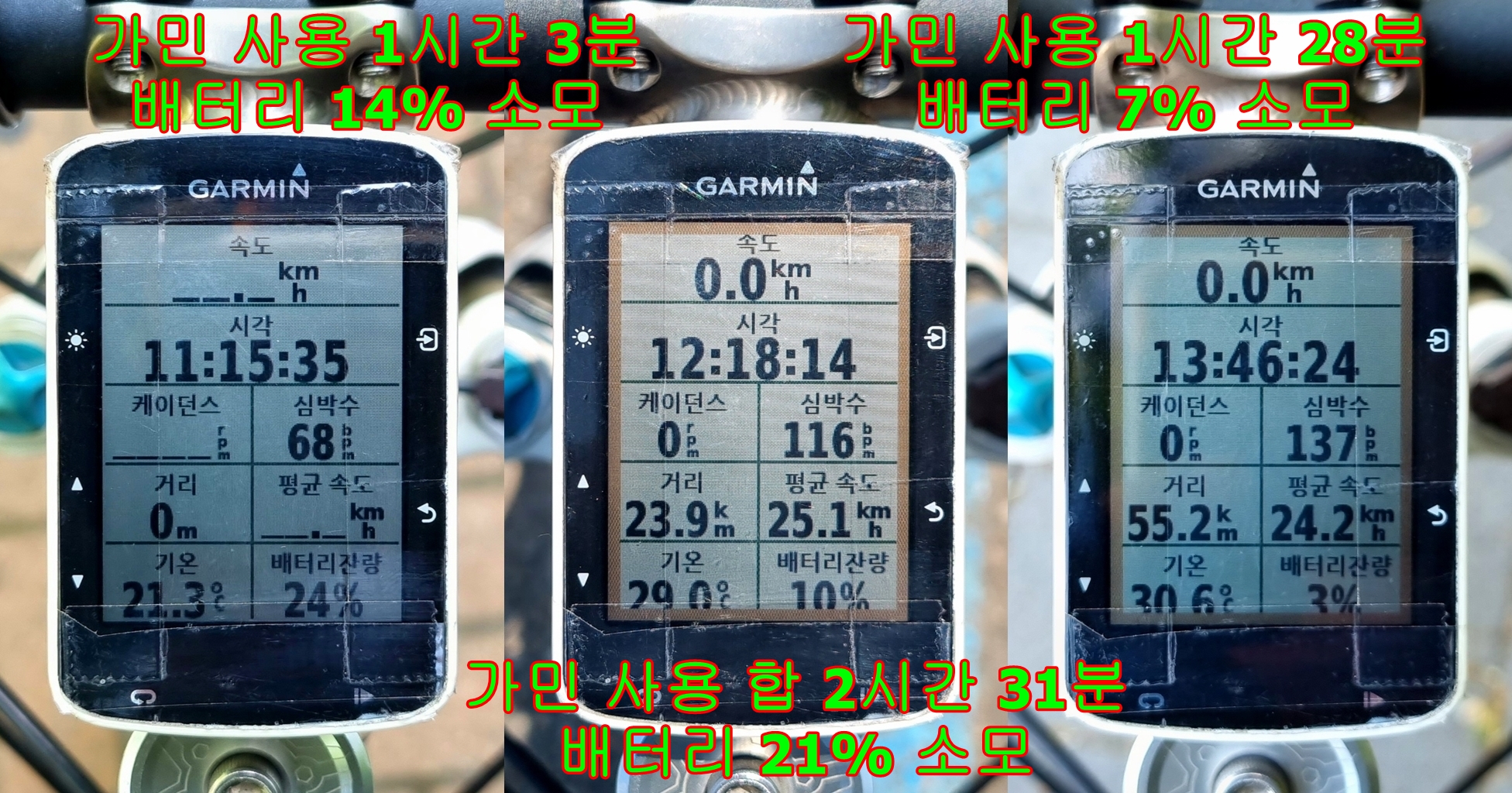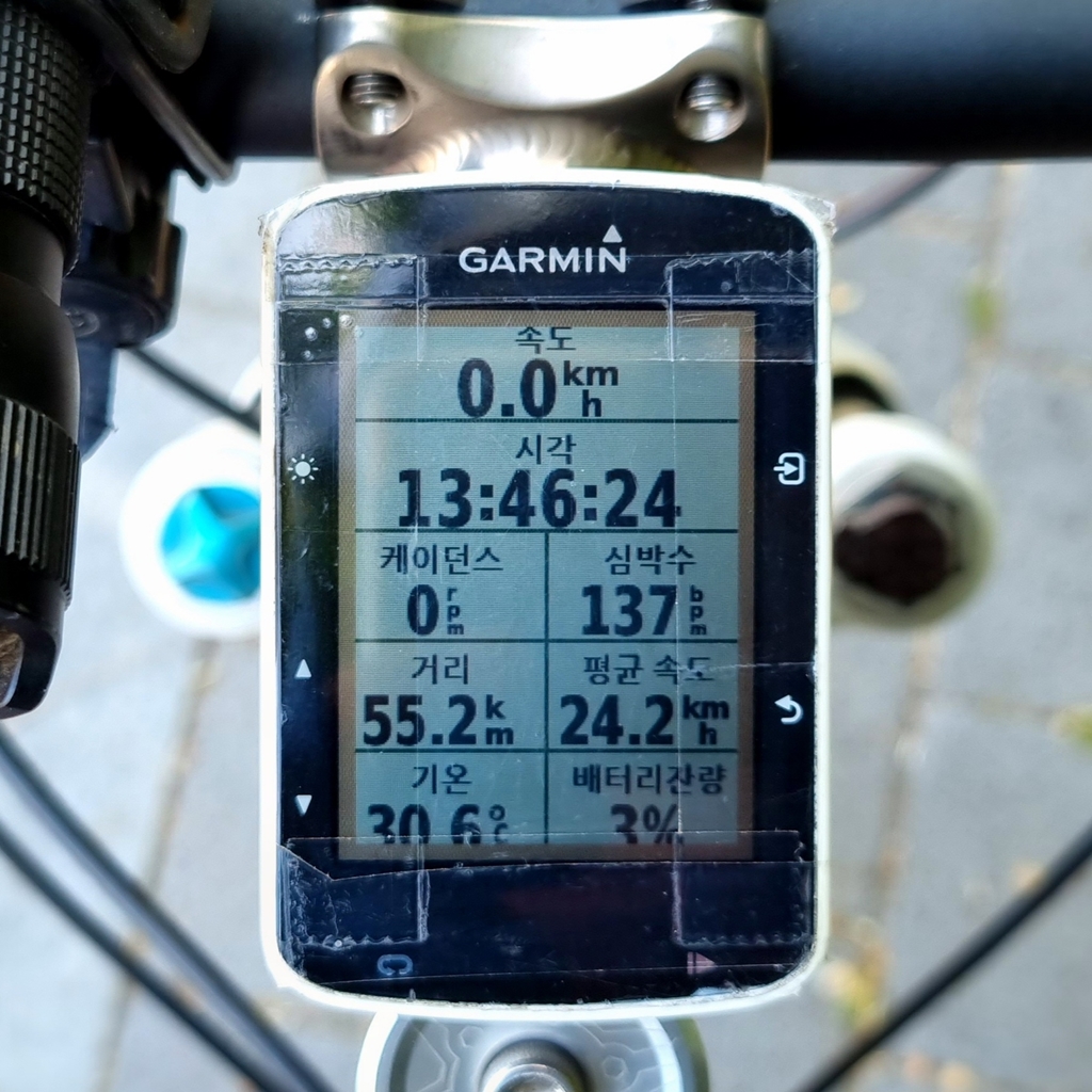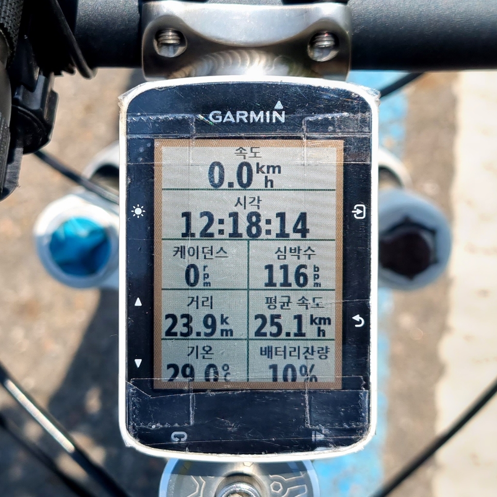 속도계 배터리 잔량 24%, 10%에서 그냥 되돌아 오는거로...