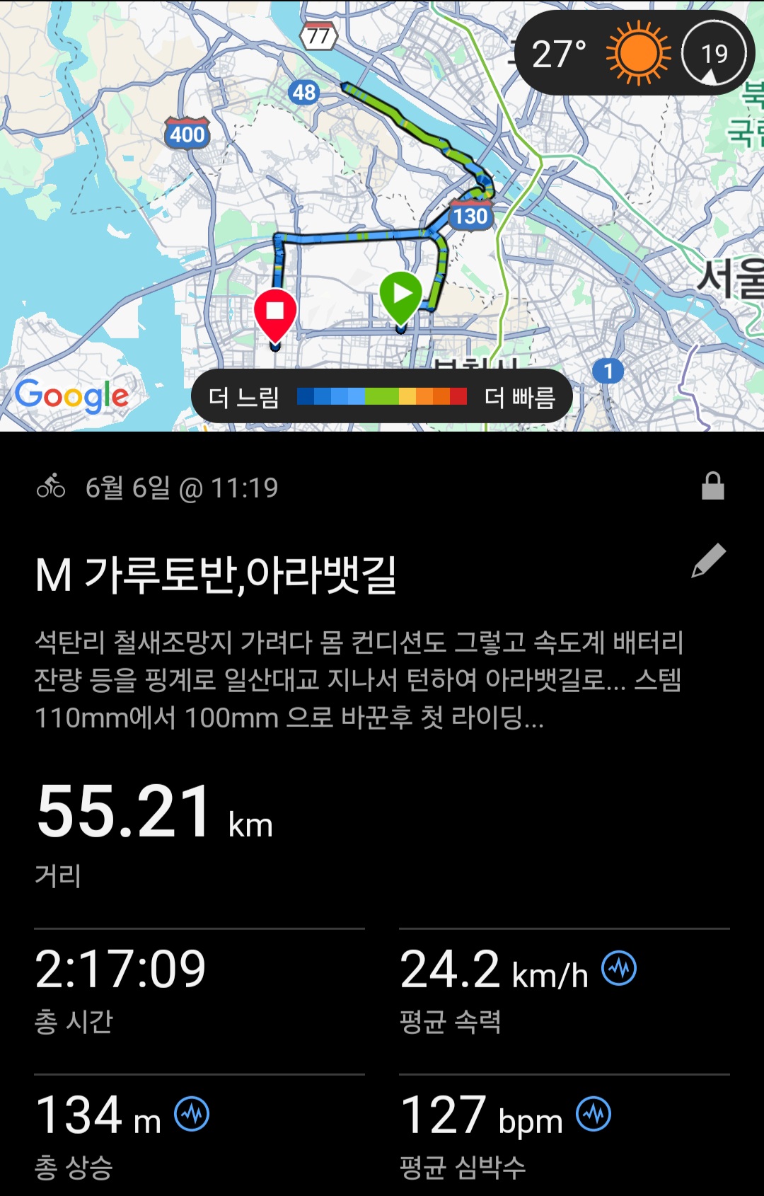 (안장 교체 후 뭔가 트러졌는지 손이 많이 아픔...)