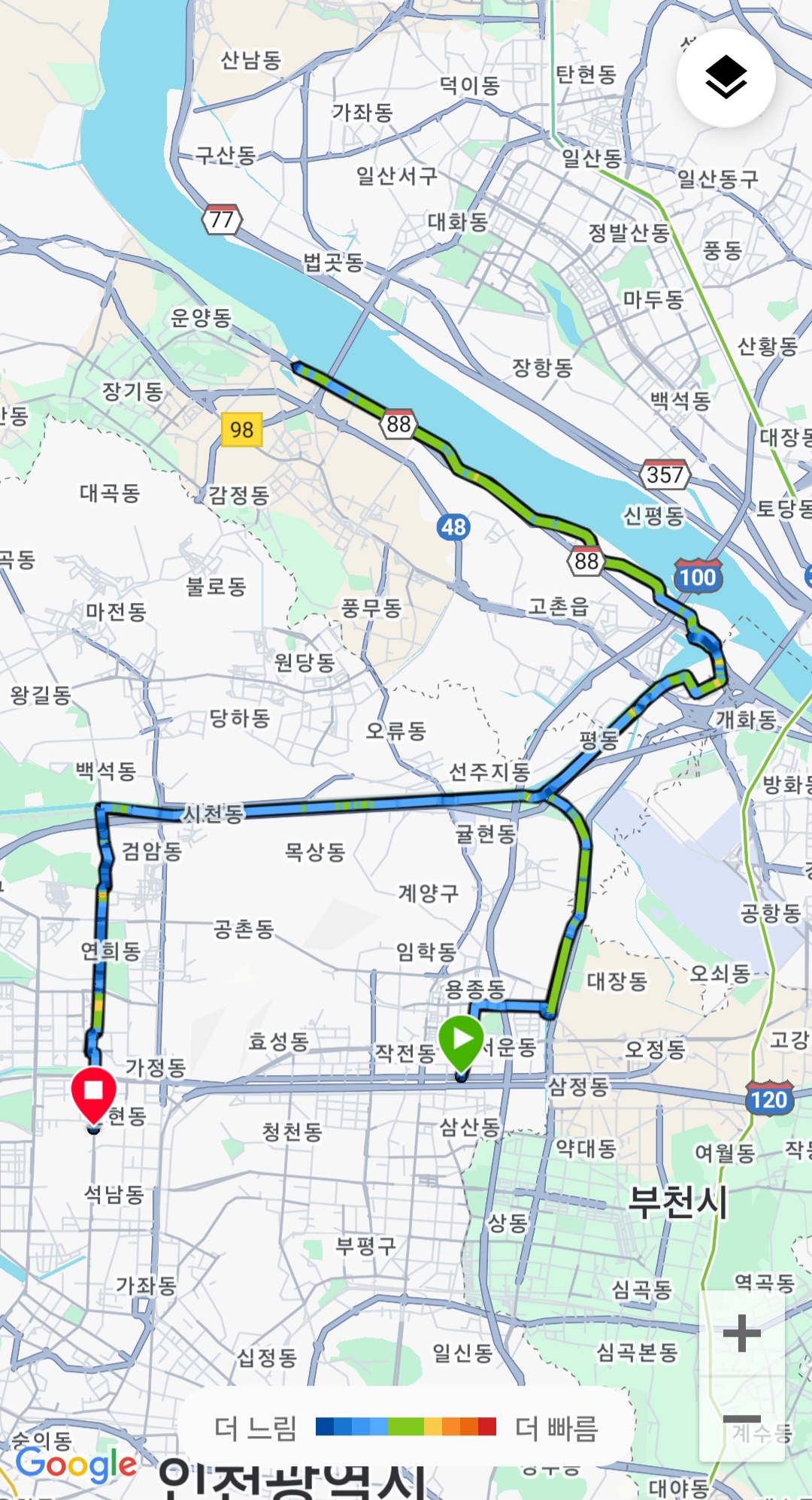 백석대교에서 봉수대로로 해서 회사에...