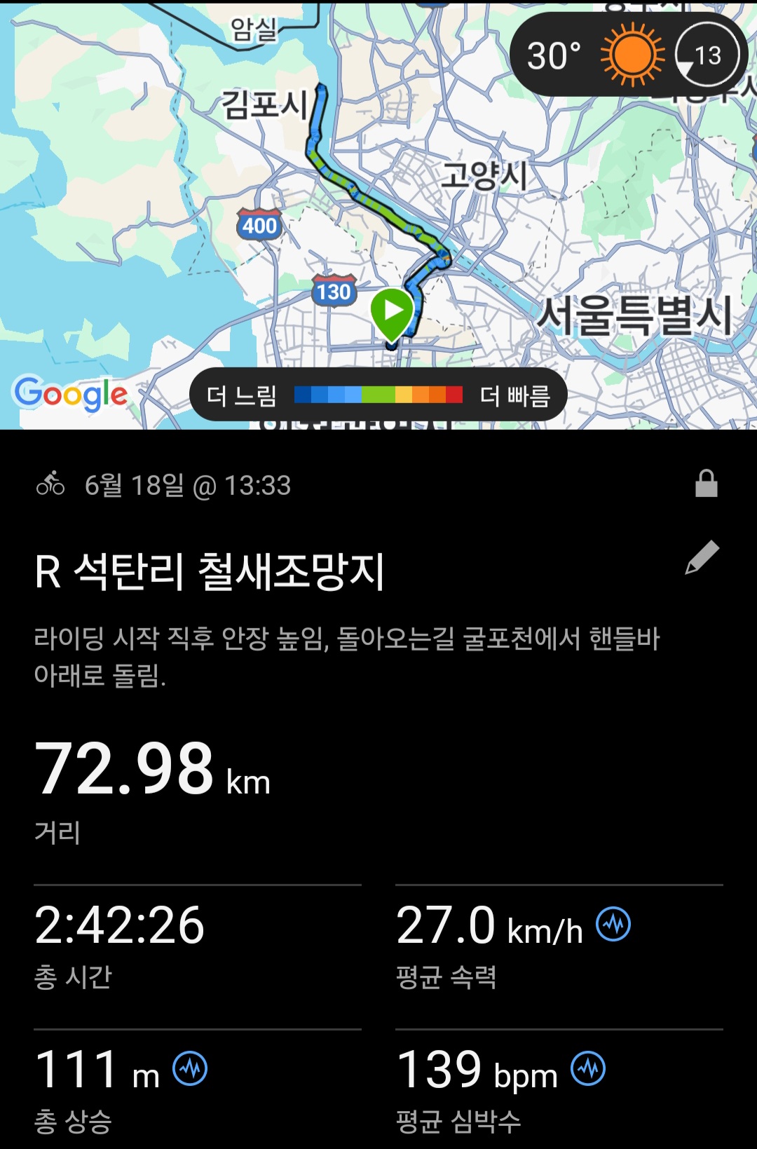 06/07(토) 이후 간만에 로드바이크 가지고 집을 나섬...