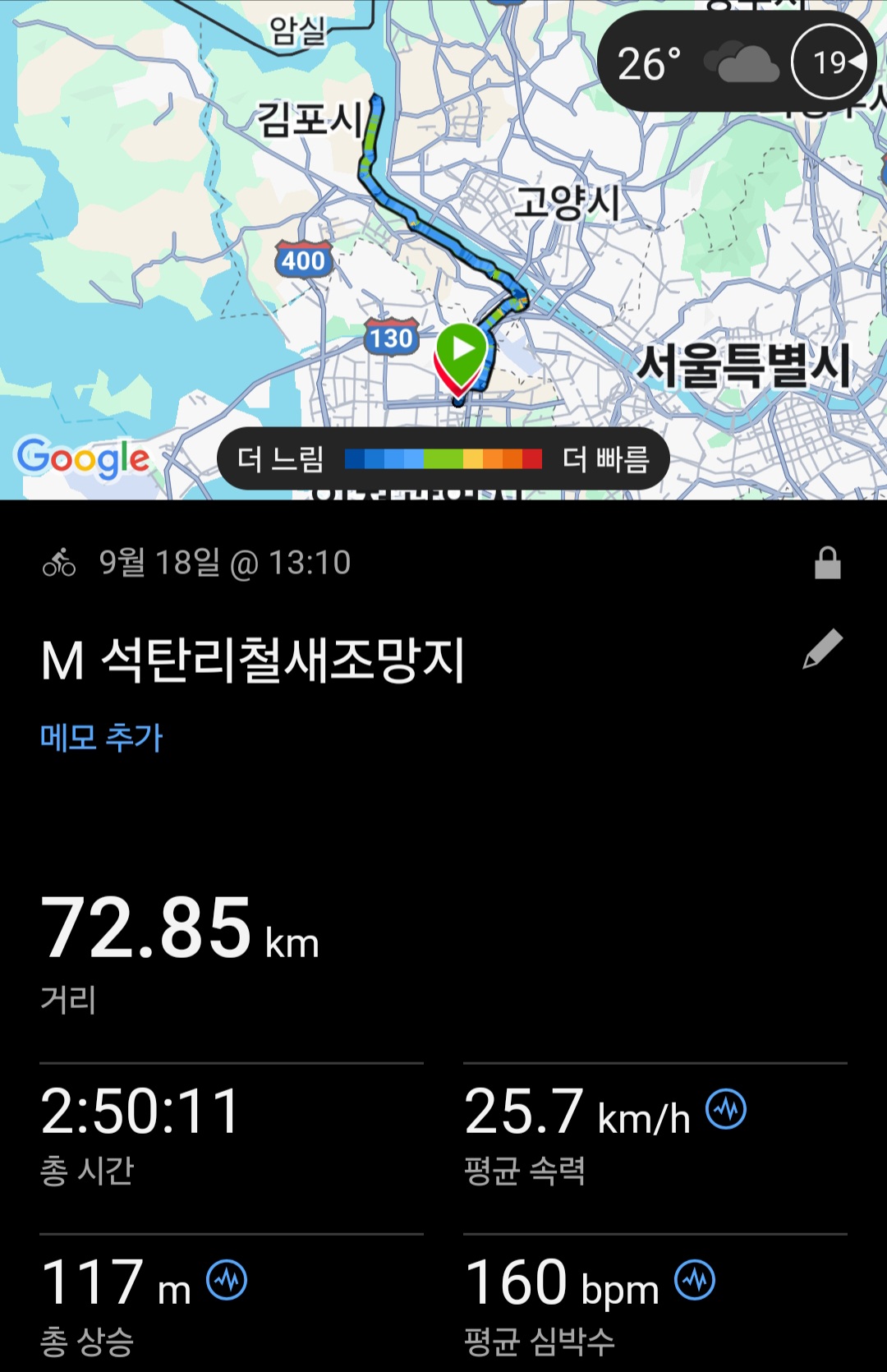 06/22(일) 이후 근 3개월 만에 70Km 이상 라이딩으로...